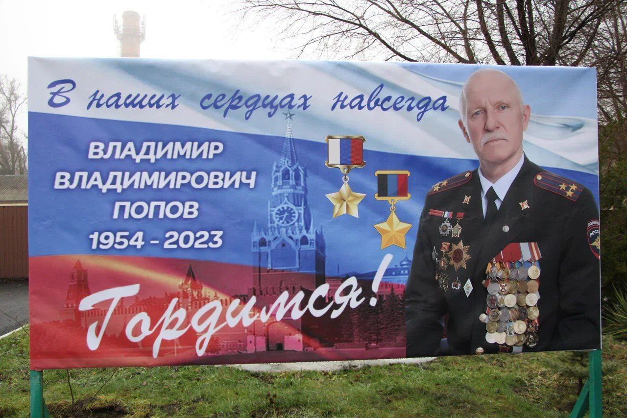 Казачьему кадетскому корпусу в Буденновске было присвоено имя прославленного командира батальона "Терек", Владимира Попова, известного под позывным "Кедр". Из 69 лет жизни он 40 посвятил служению Родине. Был удостоен званий Героя России и Героя Донецкой Народной Республики, дважды награжден Орденом Мужества, а также отмечен множеством иных наград.