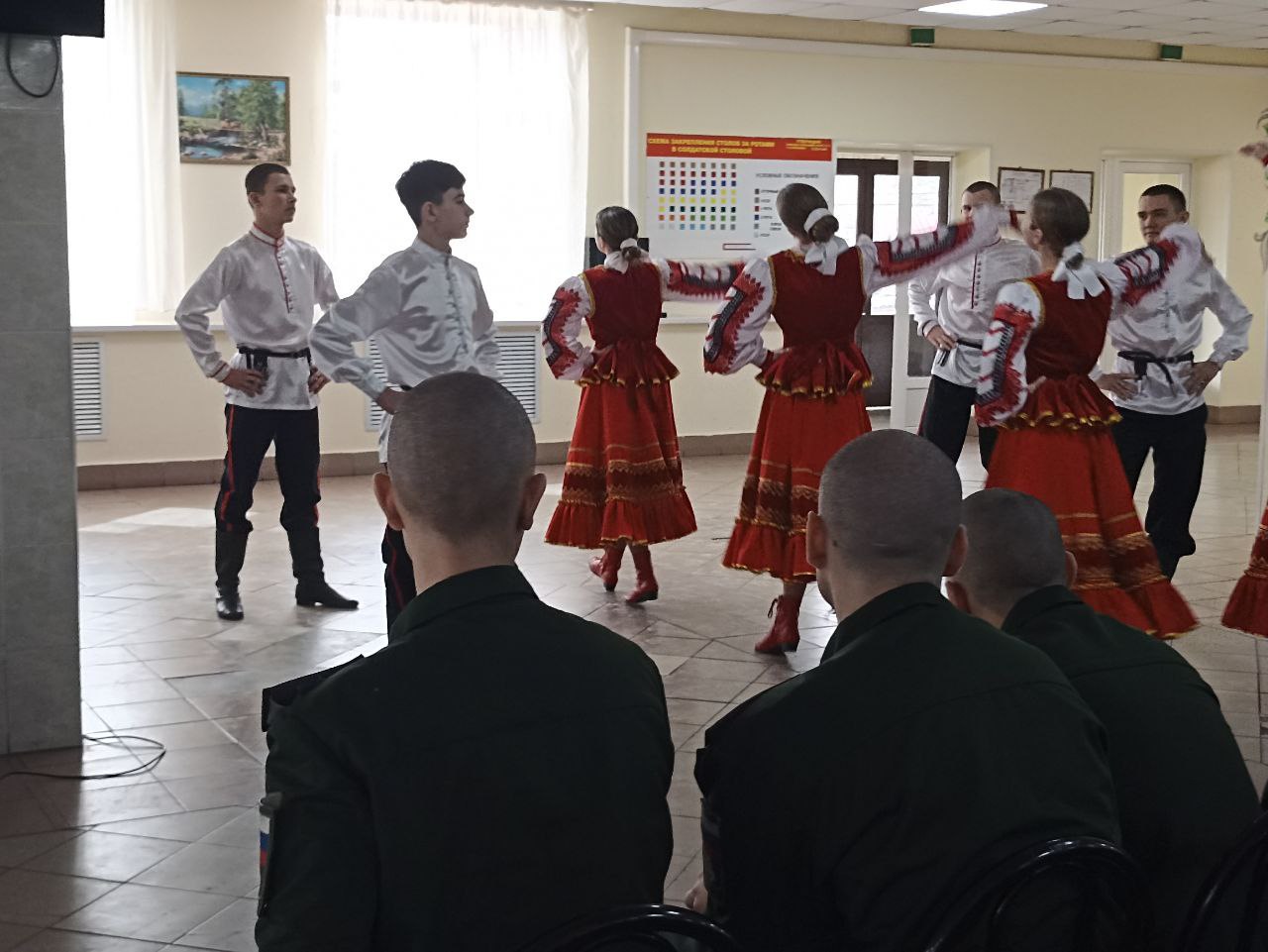 Подготовленная программа была насыщенной и разнообразной. Юные артисты представили зажигательные танцевальные номера, продемонстрировав отличную хореографическую подготовку и слаженность движений. Девушки в ярких костюмах, юноши в парадной форме — каждое выступление было пронизано энергией и патриотизмом. Репертуар был тщательно подобран и включал как современные композиции, так и песни военных лет, которые кадеты исполнили вместе с военнослужащими.