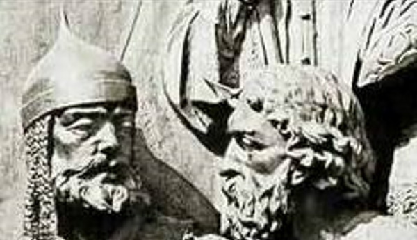 На иллюстрации: Даниил Романович (справа) с Мстиславом Удатным на Памятнике "Тысячелетие России" в Великом Новгороде