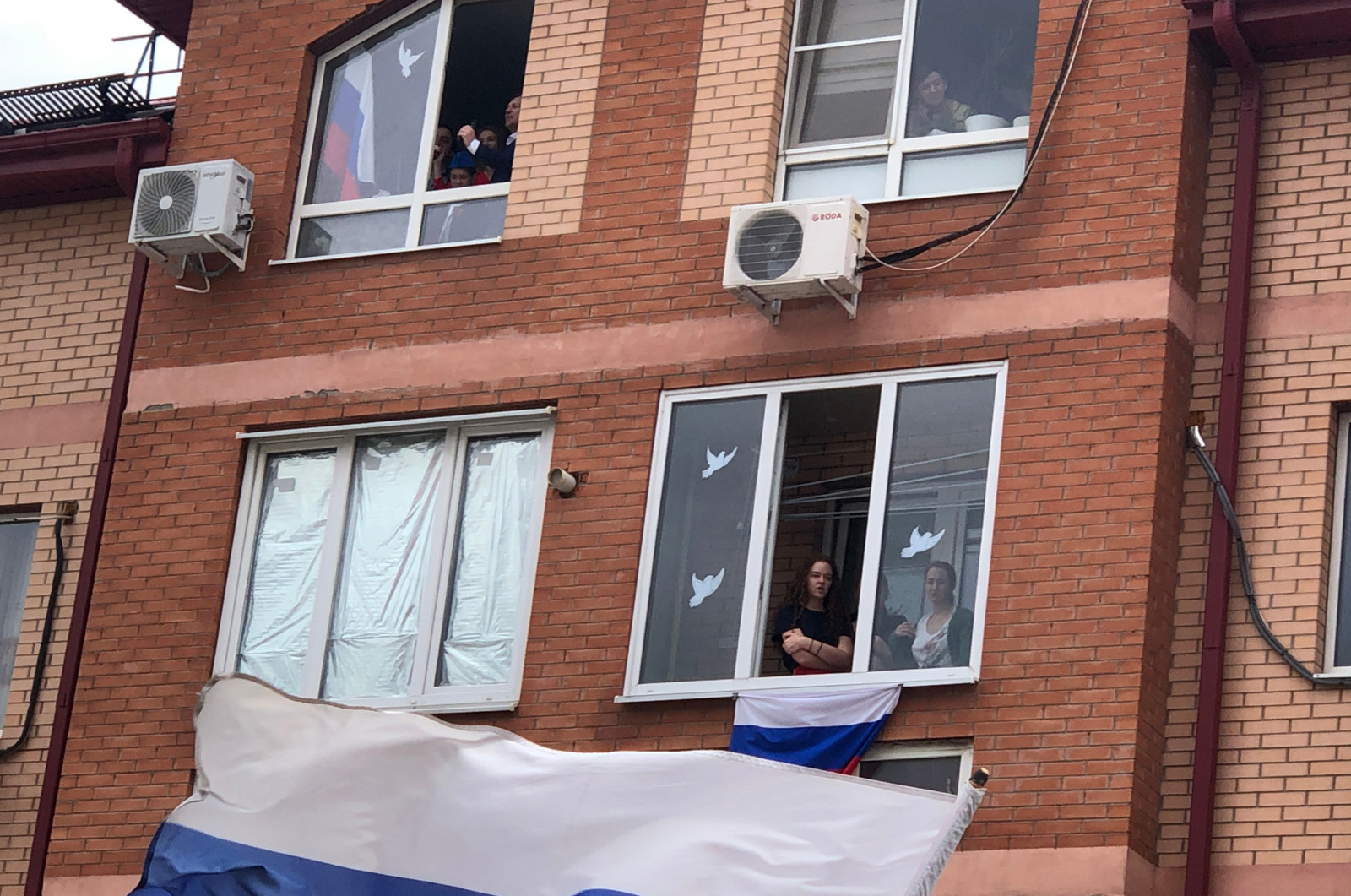 Жители Ростовской области присоединились ко всероссийской акции #ОКНА_ПОБЕДЫ. В городе Батайске прошел мини-концерт, который устроили артисты народного ансамбля песни и танца "Легенда", проживающие в одном доме на улице Ушинского. Из окон раздавались знакомые всем строки из песни "День Победы", сообщает "Правда.Ру".