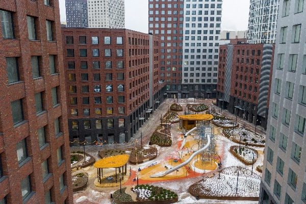 Все здания расположены на едином стилобате. Построено 110 000 кв. м жилья, в том числе:
