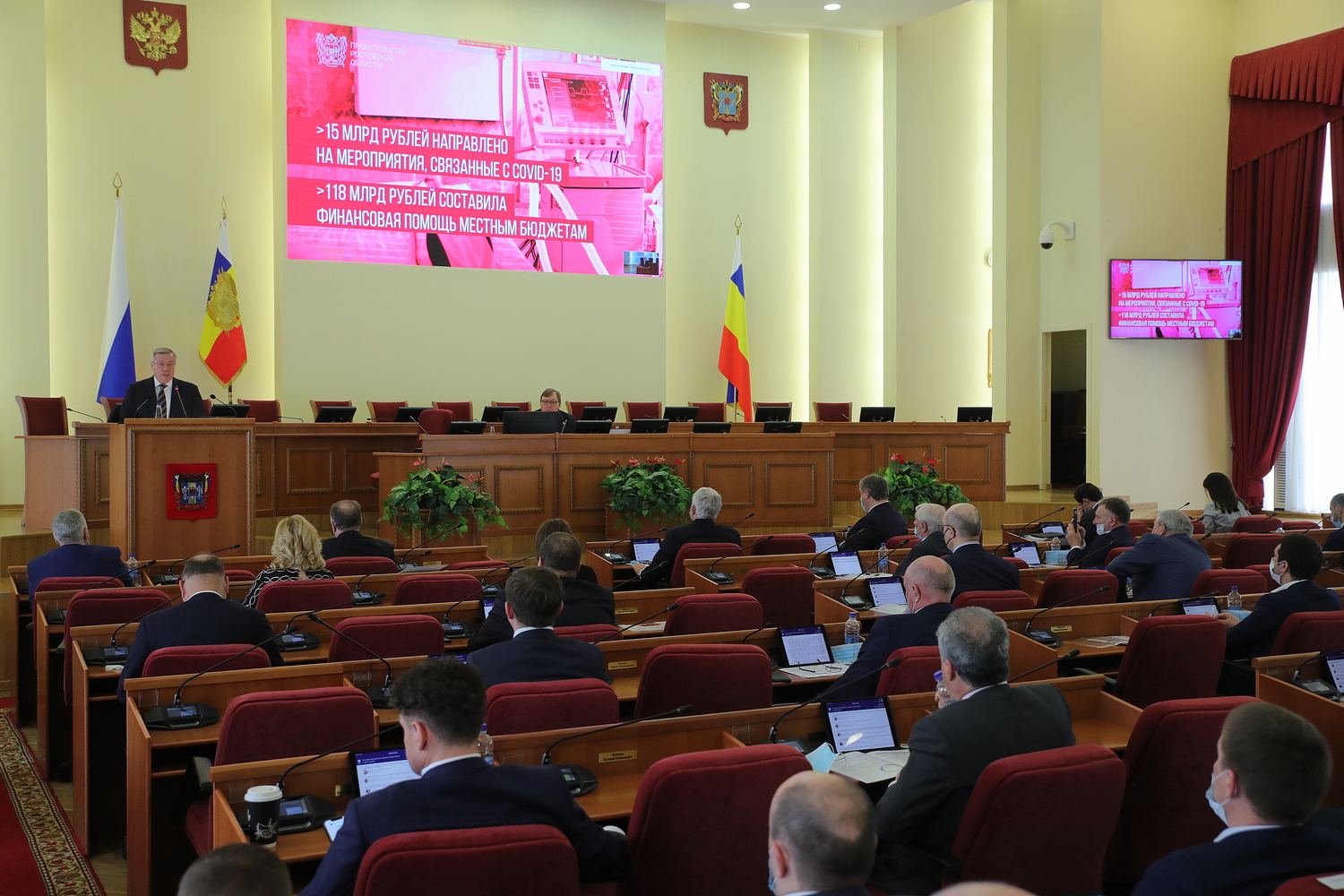 "Мы вместе смогли противостоять новой угрозе — пандемии COVID-19. Меры, принятые для противостояния угрозе на федеральном и региональном уровнях, были оперативны и масштабны. В условиях пандемии политика областных властей была направлена в первую очередь на сохранение стабильного самочувствия и благополучия жителей Дона. Основными стали социальные приоритеты", — отметил губернатор.