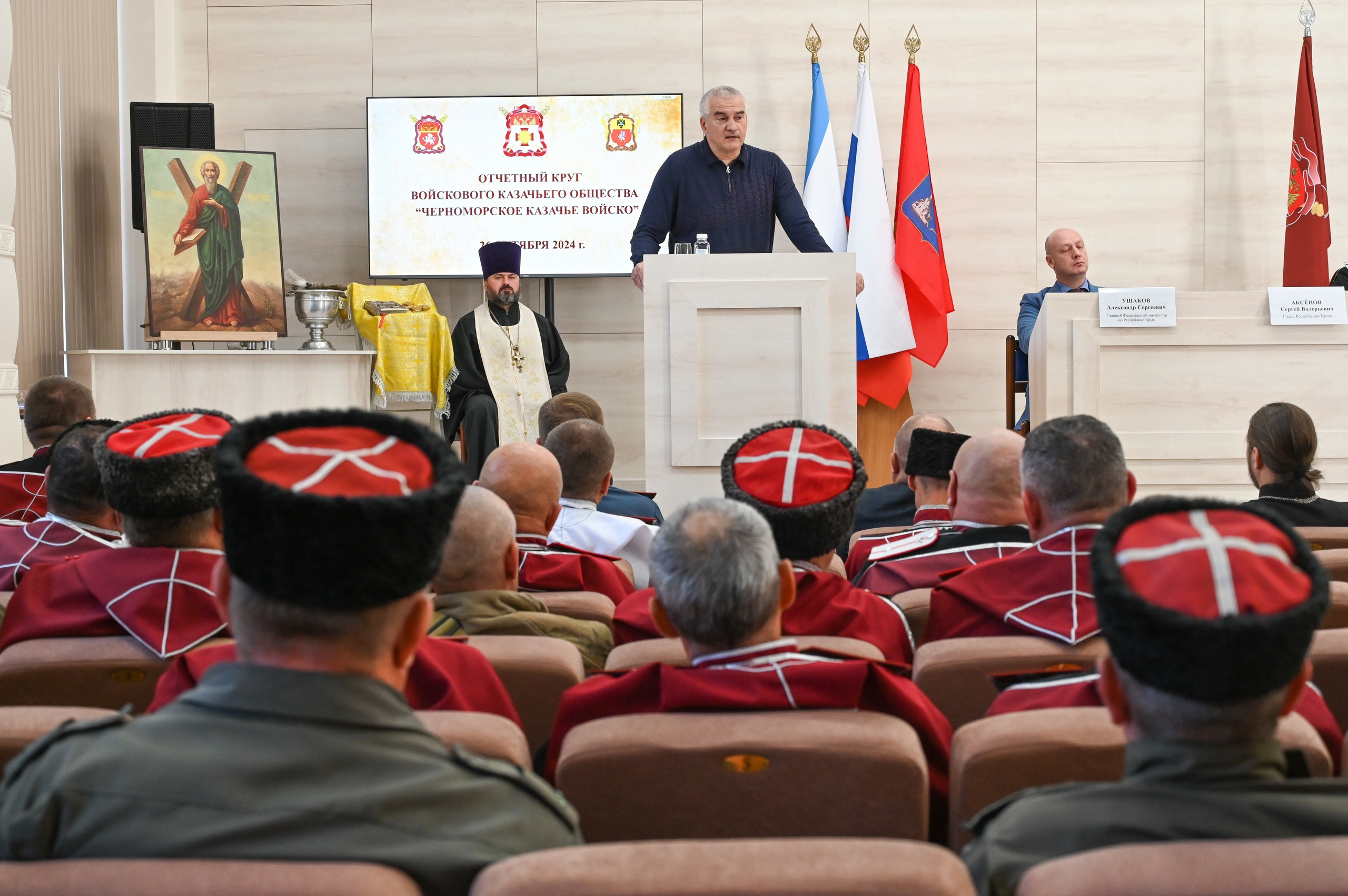 По словам Аксенова, предки казаков-черноморцев раньше тоже защищали Россию и Православную веру. Современное казачество не изменило своим традициям и приняло участие в объявленной на территории Украины специальной военной операции. По сей день казаки из разных регионов отчаянно борются с противником.