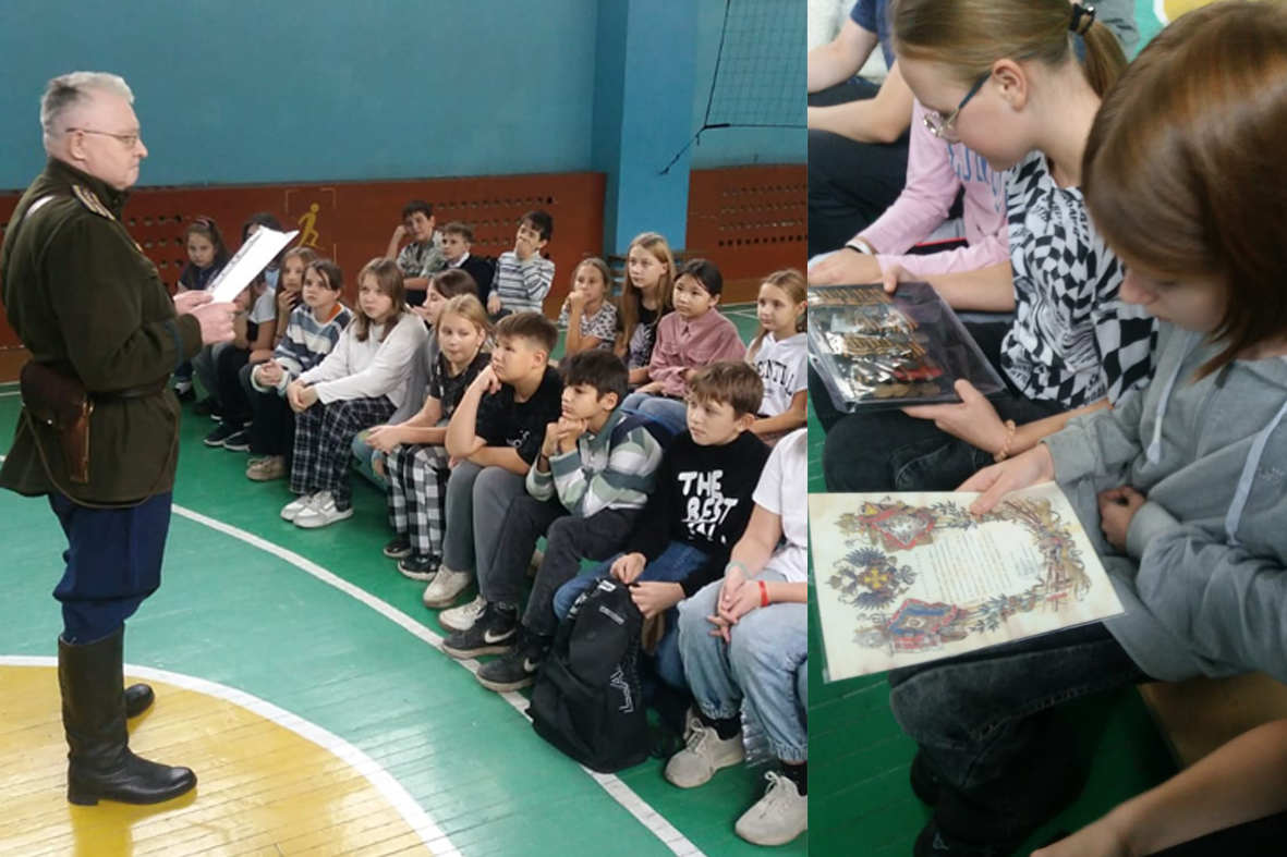 Казаки Регионального отделения СКВРиЗ в Кузбассе в Центральном районе города Новокузнецка провели большой урок для ребят, обучающихся в МБОУ "Средняя общеобразовательная школа №101". Как сообщает Союз казаков-воинов России и Зарубежья, занятие прошло в рамках военно-патриотического воспитания подрастающих граждан Российской Федерации.