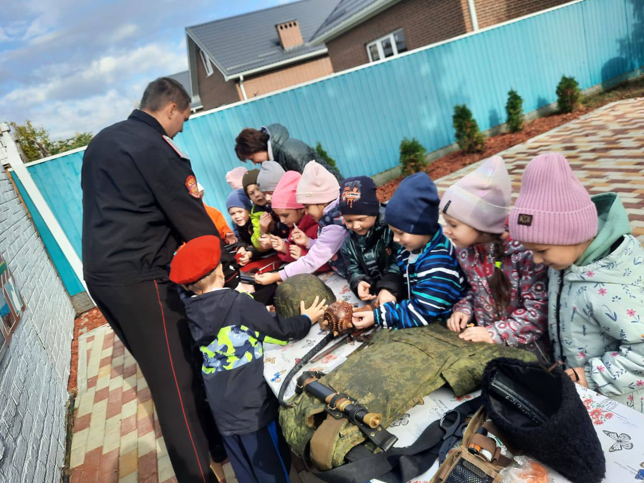 Динское районное казачье общество организовало выставку военной и казачьей амуниции в детском саду №59, расположенном в станице Новотитаровской. Об этом сообщает Кубанское казачье войско.