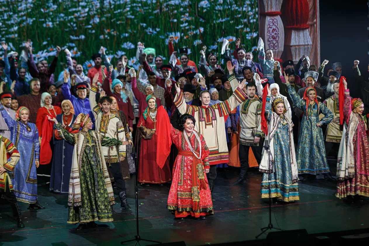 Заключительный концерт стал праздником для всех, кто любит и ценит народное творчество. Вместе с лауреатами Всероссийского конкурса перед зрителями выступил известный ансамбль "Русская песня", которым руководит народная артистка России Надежда Бабкина.