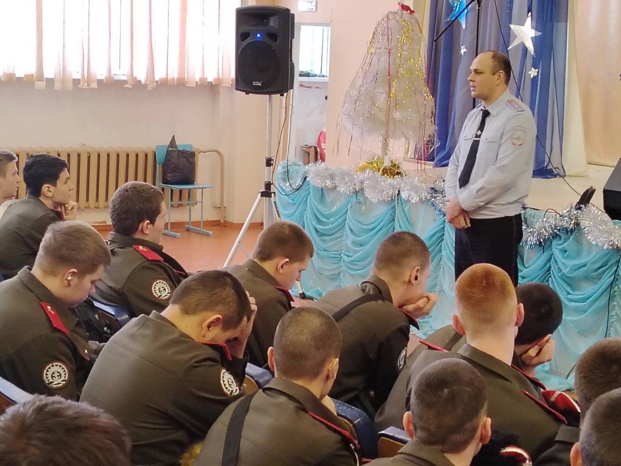 В Подтесовском казачьем кадетском корпусе в преддверии Новогодних праздников состоялась встреча с Олегом Татариным, майором полиции и начальником отделения полиции №1 МО МВД России "Енисейский". Эта встреча была организована в рамках усиления профилактической работы с молодежью.
