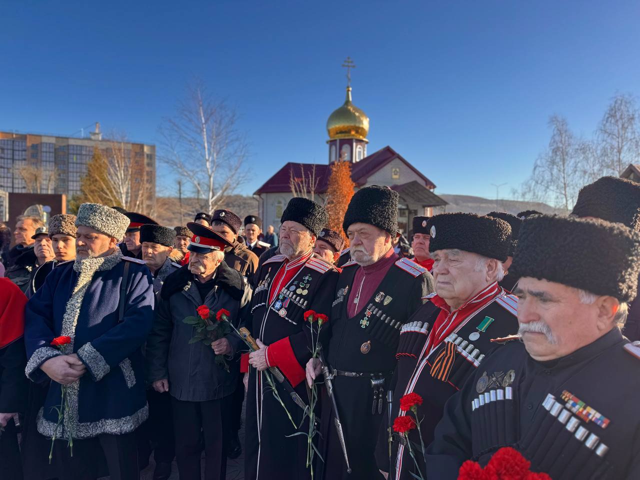 Возле мемориального комплекса собрались представители Кубанского казачьего войска, депутатского корпуса, администрации республики, военнослужащие, ветераны боевых действий, юнармейцы и жители Майкопа и окрестных населенных пунктов. Все они пришли отдать дань уважения героям, проявившим исключительное мужество и самоотверженность.