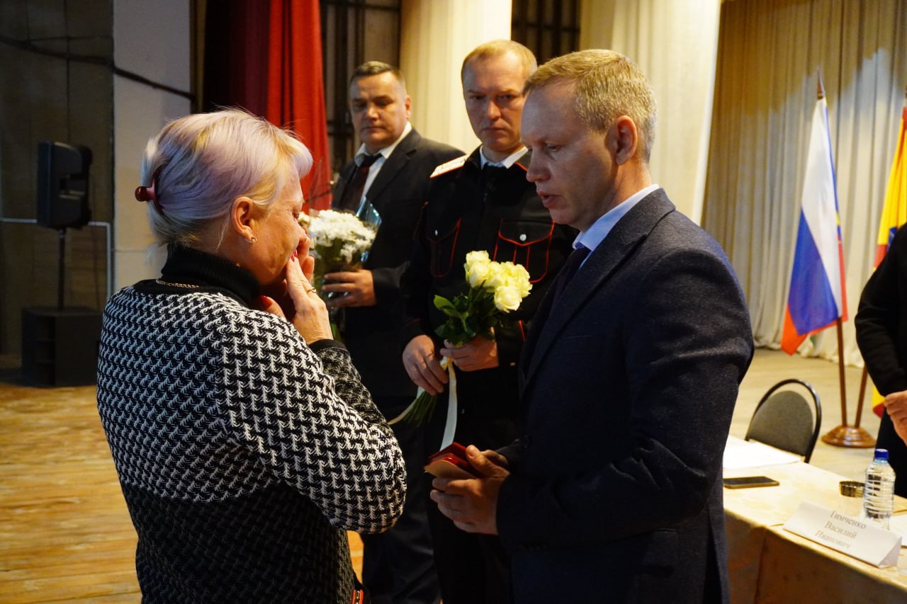 Андрей Билановский, младший вахмистр Среднечелбасского казачьего общества, отдал свою жизнь, исполняя воинский долг на передовой. Его мужество и преданность Отечеству были отмечены высокой наградой — орденом "За веру, Кубань и Отечество" I степени, который был присвоен ему посмертно. Во время встречи Роман Парахин и Анатолий Костюк торжественно вручили эту награду супруге погибшего бойца.