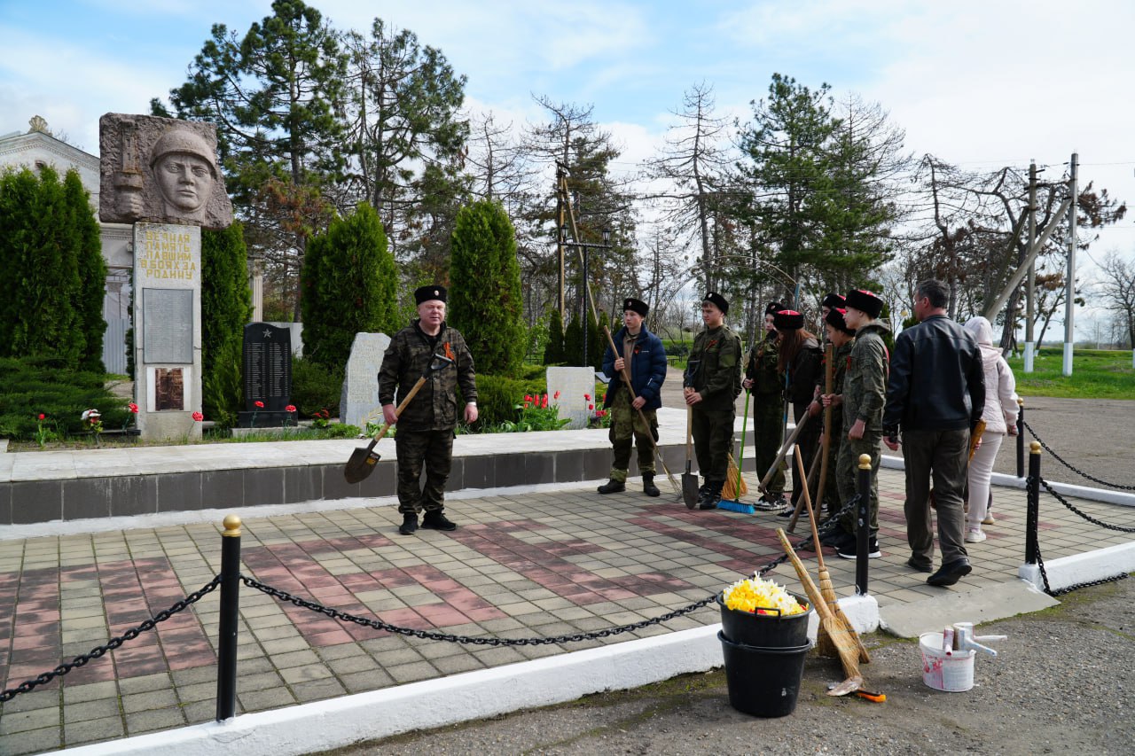 В преддверии празднования Дня Победы юные казаки Крымского отделения Союза казачьей молодёжи Кубани провели субботник на мемориальных комплексах, посвящённых героям Великой Отечественной войны. Ученики казачьей школы №66 хутора Евсеевского взяли на себя заботу о братской могиле советских солдат, павших в борьбе с немецко-фашистскими захватчиками в период с 1942 по 1943 годы. Ребята очистили территорию памятника от скопившегося мусора и сухой растительности.