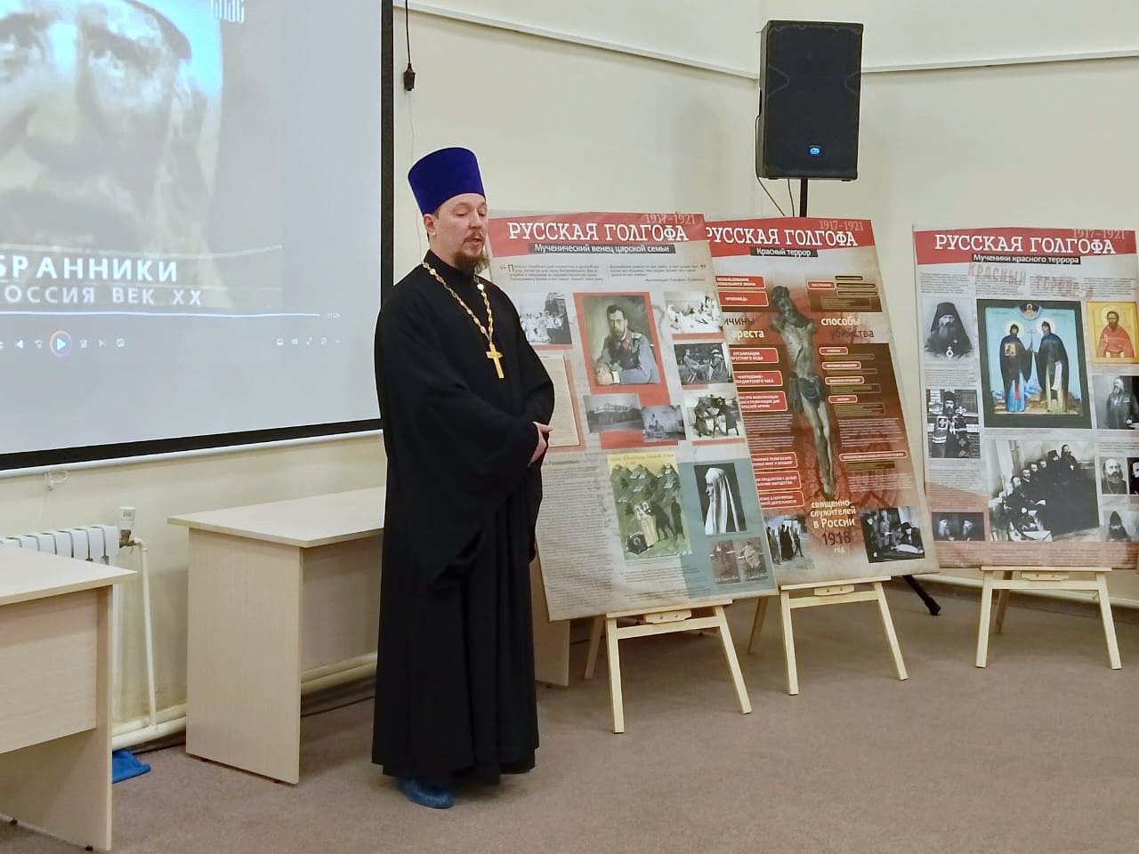 О роли духовенства в сохранении позиций Церкви в сложный период революционных преобразований и становления новой власти студентам рассказали преподаватель истории педагогического колледжа Сергей Каргин и атаман Верхне-Донского округа Алексей Косоножкин. Они раскрыли перед молодым поколением исторический контекст эпохи, подчеркнув важность подвига служителей церкви в борьбе за веру.