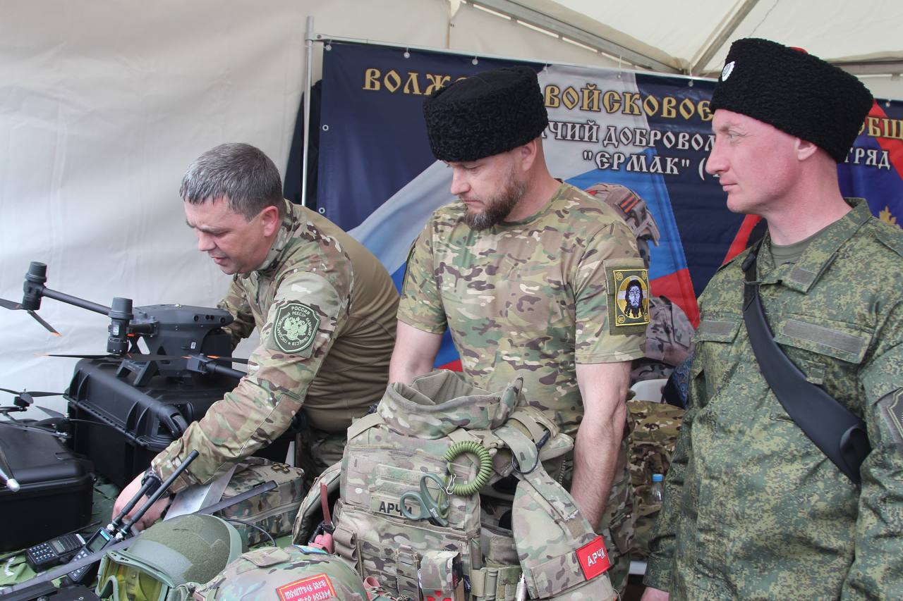 Две станицы Волжского войскового казачьего общества организовали интерактивные экспозиции, погружающие посетителей в атмосферу казачьего быта. Станица "Борская" восстановила традиционный курень и полевую кухню, а юные воспитанники детско-юношеской спортивной школы Борского района продемонстрировали элементы верховой езды. Параллельно Самарское окружное казачье общество представило выставку снаряжения казачьего добровольческого отряда БАРС-15 "Ермак".